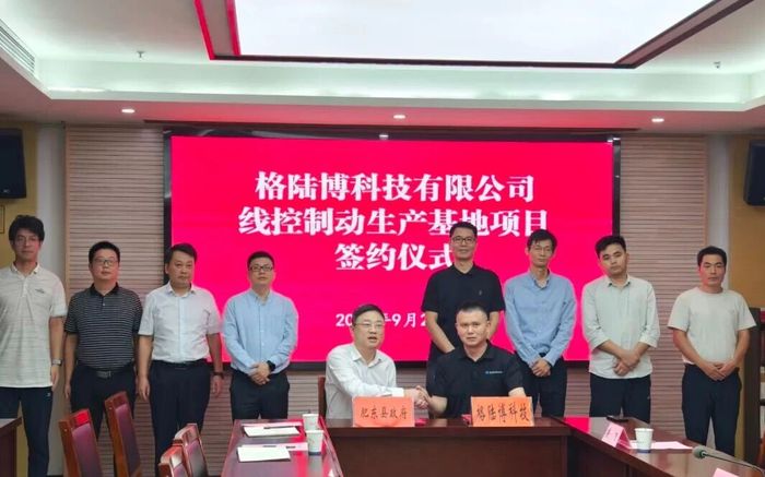 近日,格陆博科技有限公司与肥东县政府签订线控制动产品生产基地项目,项目规划分二期建设,一期在肥东县建设集成制动控制系统(GIBC)、电子稳定控制系统(ESC)及电控机械制动系统(EMB)生产线,同步搭建研发中心及测试基地;二期在一期基础上进一步扩大规模并丰富产品线。